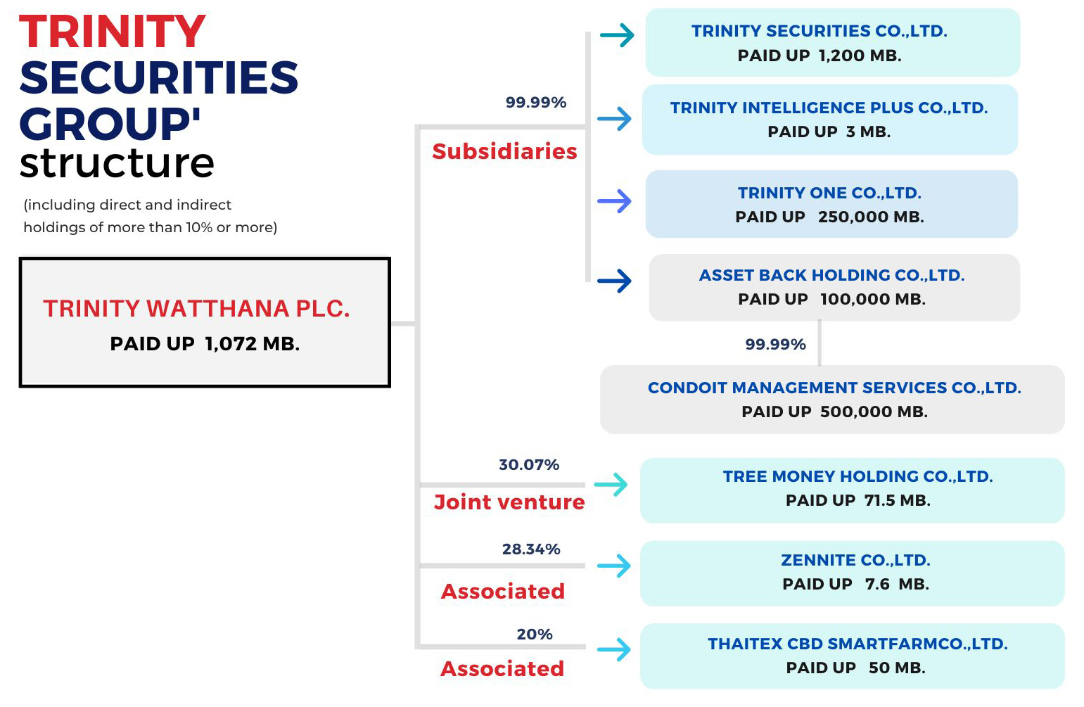 As Trinity Watthana Plc. is a holding company, investing in other companies and listed company, and also lending to individual or listed companies with pledged securities. However, main source of revenue derive from Trinity Securities Co., Ltd., which is a core company. Therefore, in presenting information, Trinity Watthana Plc. and Trinity Securities Co., Ltd. will both be mentioned.