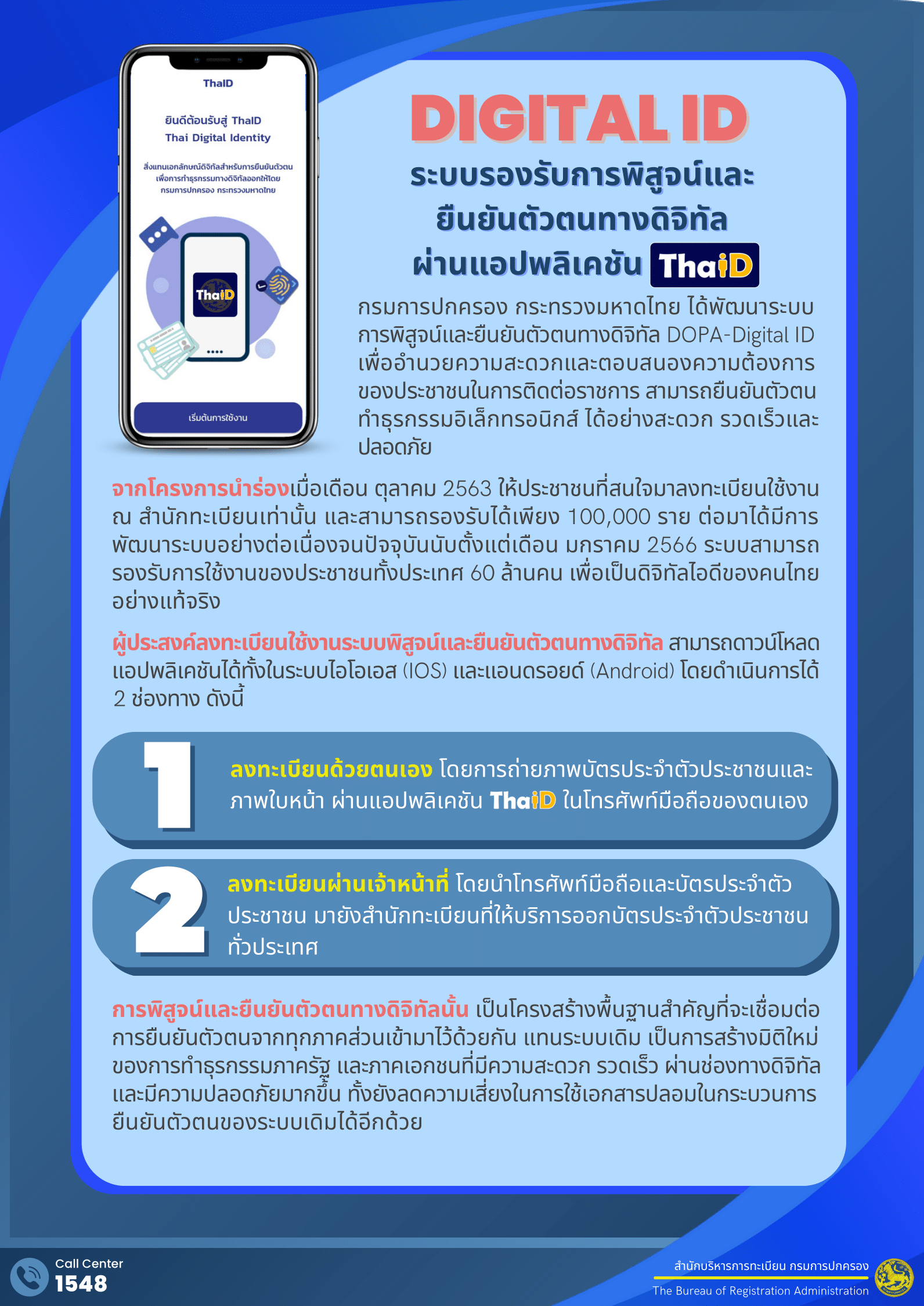 พิสูจน์และยืนยันตัวตนผ่านแอปพลิเคชัน ThaID ลงทะเบียนผ่านเจ้าหน้าที่