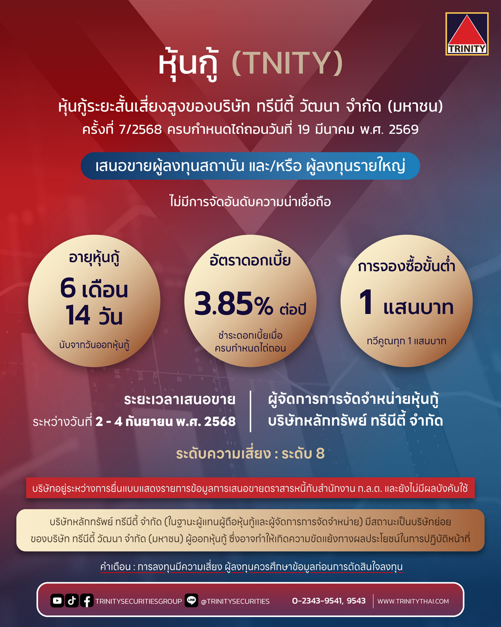 หุ้นกู้ระยะสั้นเสี่ยงสูง ของบริษัท ทรีนีตี้ วัฒนา จำกัด (มหาชน) ครั้งที่ 7/2568