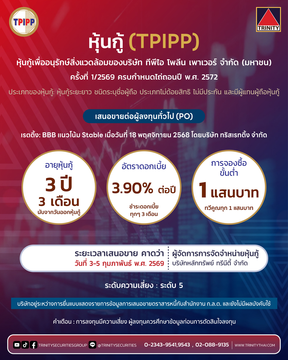 ระยะเวลาเสนอขายคาดว่าอยู่ระหว่างวันที่ 3 - 5 กุมภาพันธ์ 2569