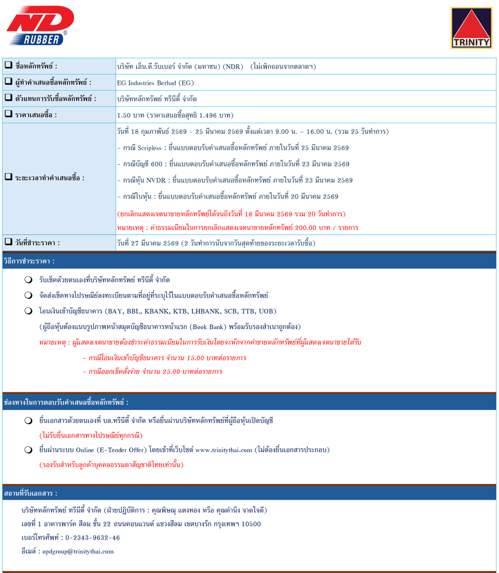 การทำ Tender Offer บริษัท เอ็น.ดี.รับเบอร์ จำกัด (มหาชน) - NDR